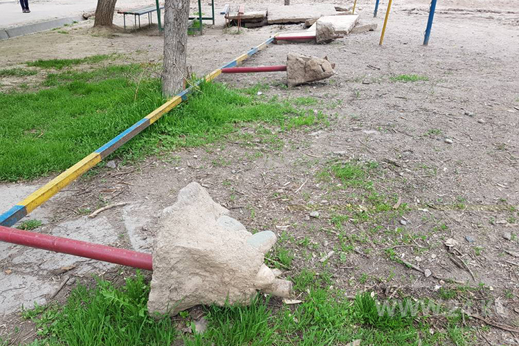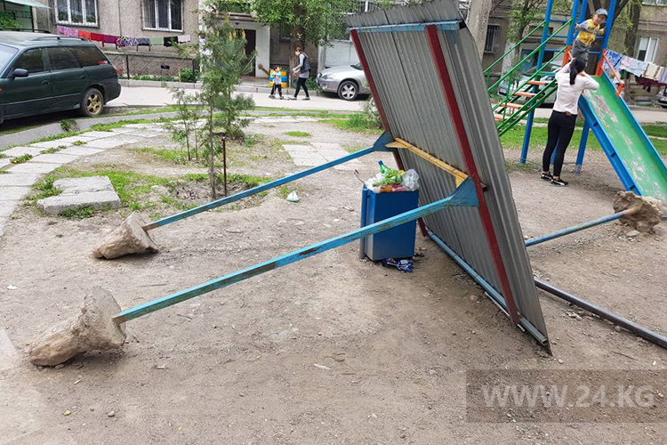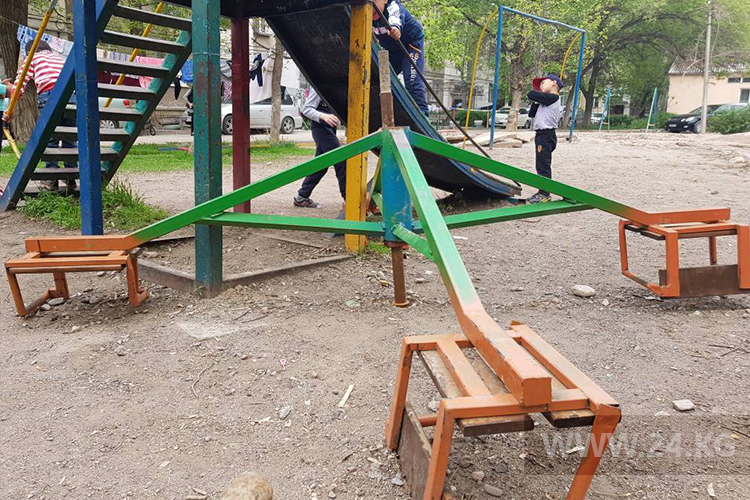 «Оставили все в ужасном виде. Теперь наши дети бегают среди бетонных обломков с торчащими штырями и ямами», — написал он. Бишкекчанин просит соответствующие службы привести площадку в первоначальный вид.