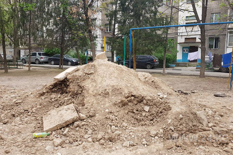 В начале марта в микрорайоне «Аламедин-1» городские службы перекопали детскую площадку и до сих пор не восстановили. Об этом ИА «24-kg.com» сообщил читатель.