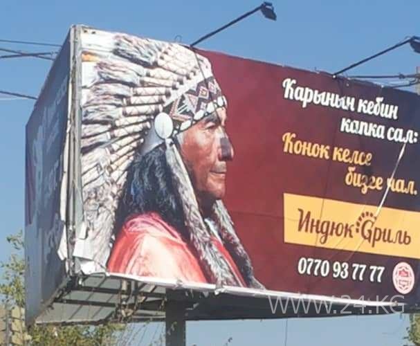 Рекламный щит, расположенный в Бишкеке на пересечении улицы Садырбаева и Южной магистрали, оскорбляет народность Америки, считает читатель ИА «24-kg.com».