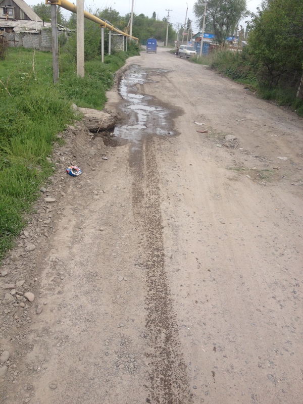 В селе Ленинском незаасфальтирована улица Денисенко (бывшая Ключевая). «Зимой здесь наледь, весной и осенью можно передвигаться практически вплавь, а летом все в пыли. На прошлой неделе я обращался в сельсовет, ответили, что нет средств на дорогу. А в округе практически во всех новостройках и селах заасфальтированные улицы, только наше село обходят стороной. Руководство Чуйской области, пожалуйста, обратите внимание!» — написал житель села Ленинского.