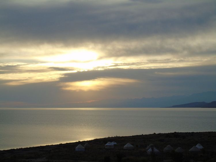 Прогулялись по горам, а теперь полюбуемся неповторимыми иссык-кульскими закатами. В исполнении же Орынбека Асилбаева они приобретают еще и некую чарующую таинственность.
