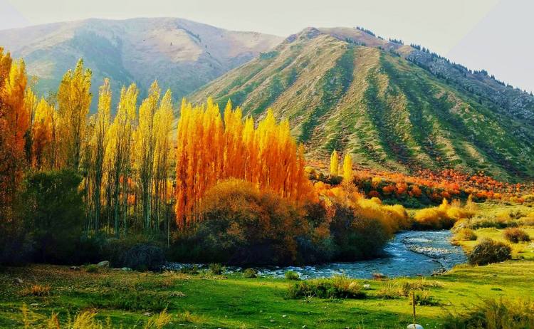 Через озеро движемся к северному берегу, где в Григорьевском ущелье сделал осеннюю фотографию еще один наш постоянный автор — Орынбек Асилбаев. Буйство красок словами не опишешь, так что просто наслаждаемся этой картиной.