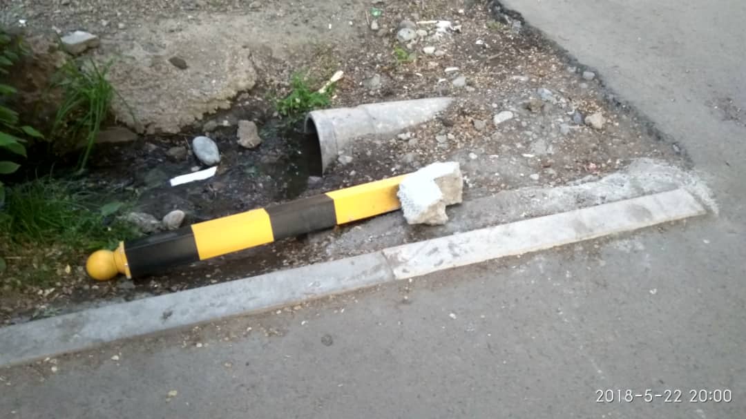 Возле почтового отделения №44 на проспекте Айтматова так установили на тротуаре ограждения для машин, что их можно вытащить руками. Об этом ИА «24-kg.com» сообщил читатель.