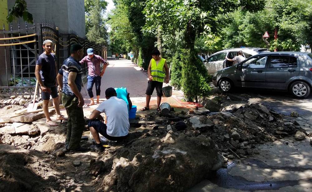 На улице Ленина в Оше из-за строительных работ людям приходится идти по проезжей части. Об этом ИА «24-kg.com» сообщил читатель.