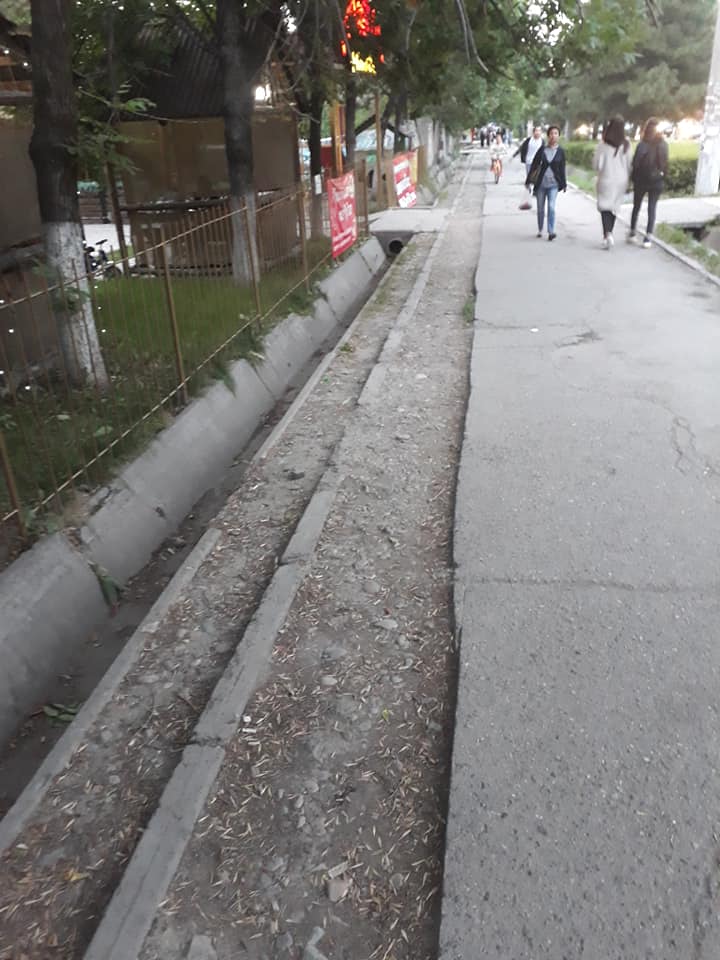 В седьмом микрорайоне тротуар на улице Юнусалиева перекопали более года назад, но асфальт так и не восстановили. Об этом в группе «Черный список» в социальной сети Facebook сообщил Айбек Турдалиев.