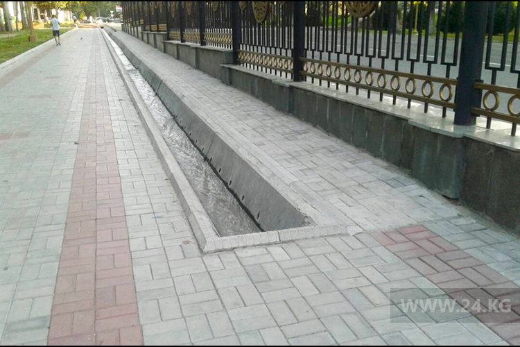 Возле «Белого дома» в Бишкеке арык начинается посреди тротуара, что очень опасно. Об этом ИА «24-kg.com» сообщил читатель.