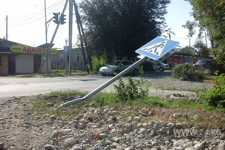 В Бишкеке на перекрестке улиц Суюмбаева и Жумабека сломан дорожный знак «Пешеходный переход». Об этом ИА «24-kg.com» сообщил читатель.