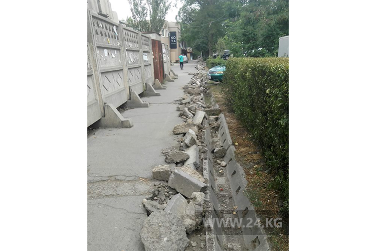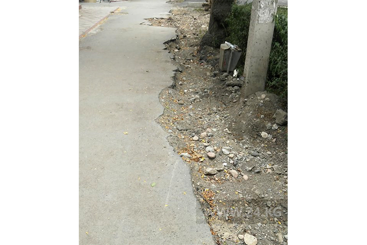 «Это улица Московская — участок от Ибраимова до Гоголя. Когда-то здесь были отличные арыки с двух сторон и тротуар с бордюрами. Но потом Московскую отремонтировали. Участок от Карпинского до Ибраимова открыли еще в мае. И вот что мы видим. Мы возмущены!» — написали ИА «24-kg.com» читатели.