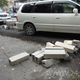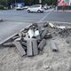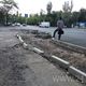 От улицы Гоголя вдоль тротуара уложили бетонные блоки. Часть из них складировали на проезжей части. Сам тротуар не отремонтирован. Местами он полностью разрушен.