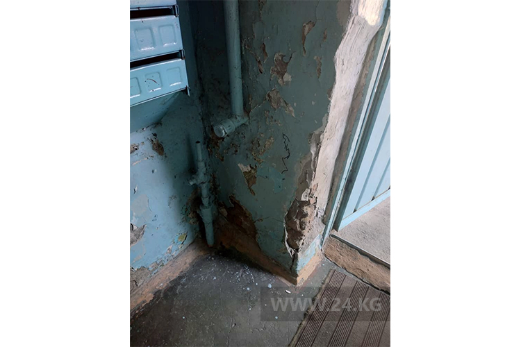 По их данным, течь видна под квартирой жильцов, но устранять ее никто не хочет. Жильцы вызывали специалистов Бишкекводоканала еще полгода назад. Ситуацию это не изменило.