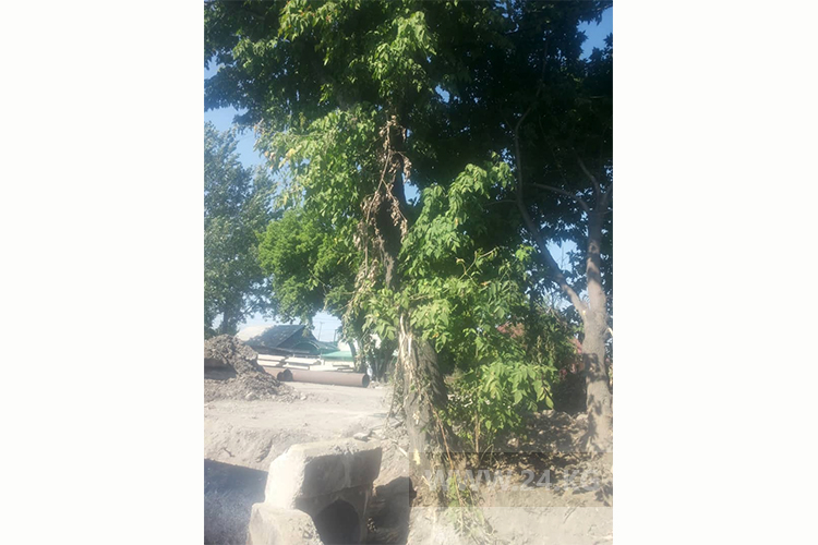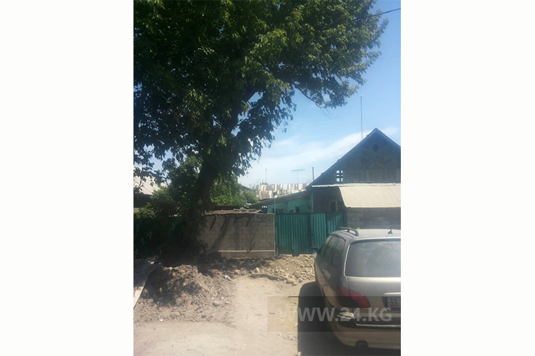 После ремонта отрезка улицы Тоголока Молдо остались аварийные деревья, которые угрожают жилым домам. Об этом сообщили читатели 24.kg.