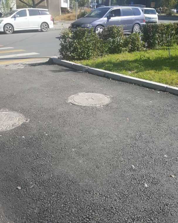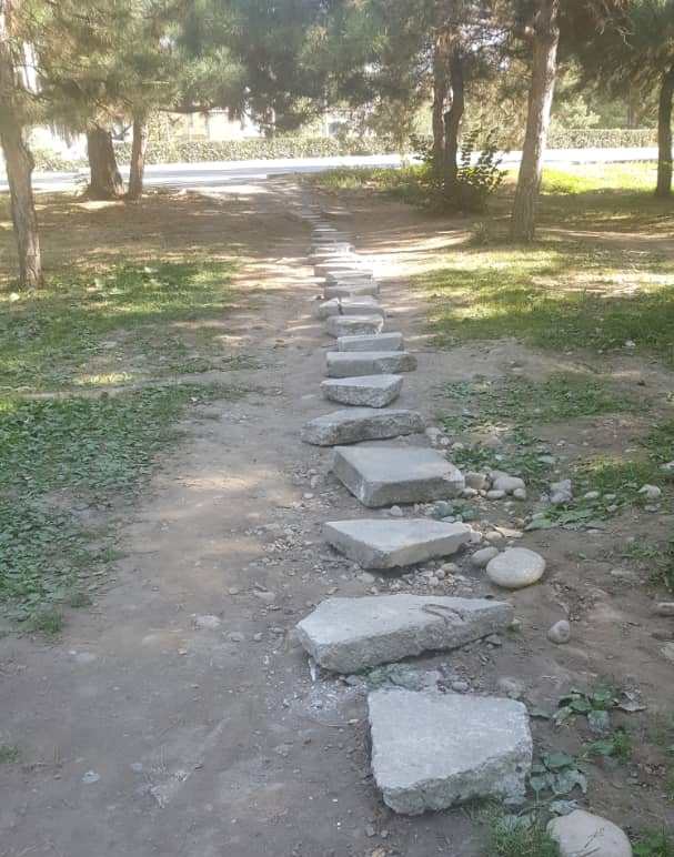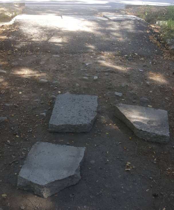Вместо дорожки или тротуара в зеленой зоне в микрорайоне № 8 городские власти положили сломанные плиты. Об этом 24-kg.com сообщили жители.