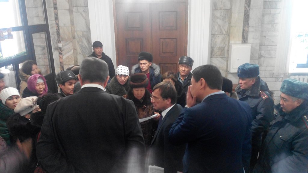 В фойе мэрии Бишкека митингуют жители жилмассива «Ак-Ордо»