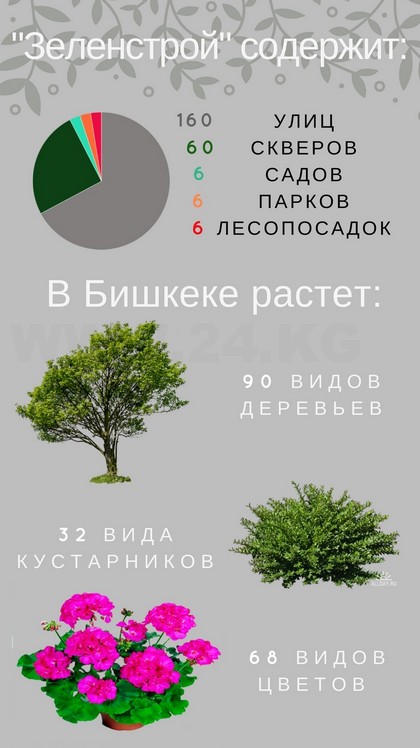 - Климат в Бишкеке резко континентальный, микроклимат обеспечивается благодаря зеленым насаждениям. Создание новых и содержание существующих зеленых зон, парков, скверов и улиц является основным приоритетным направлением деятельности в сфере озеленения, отмечают разработчики документа.