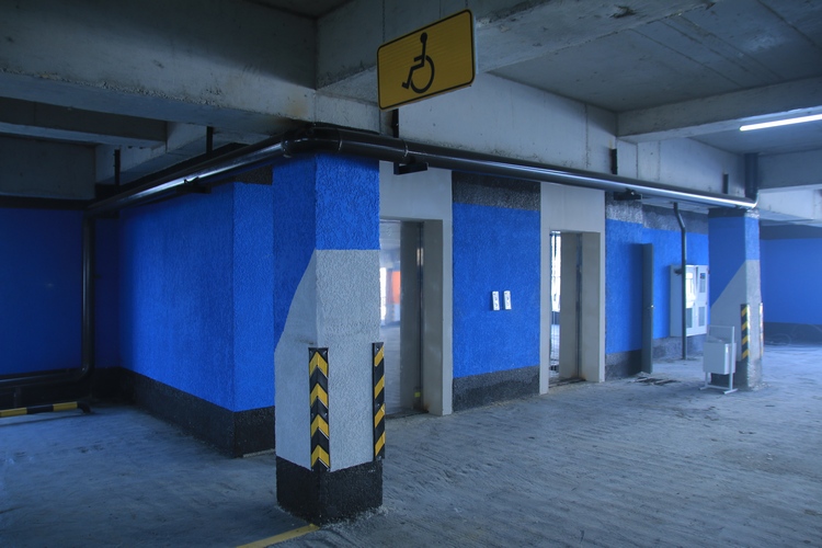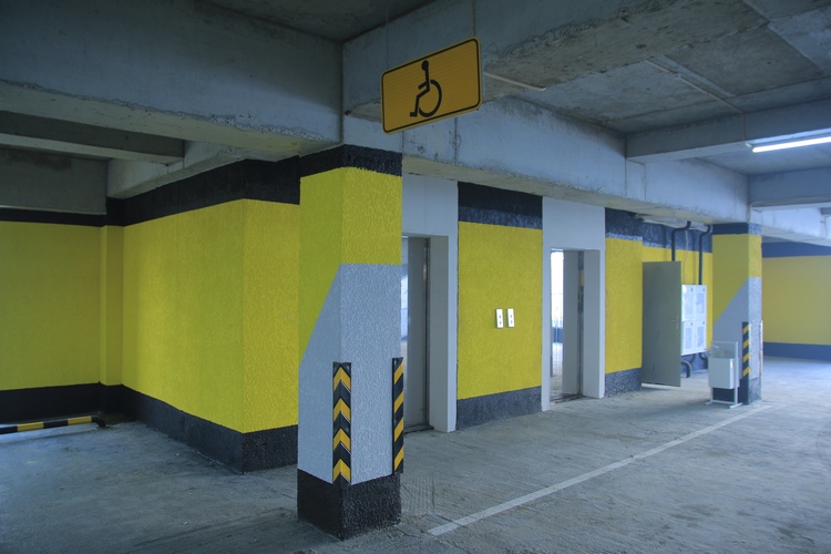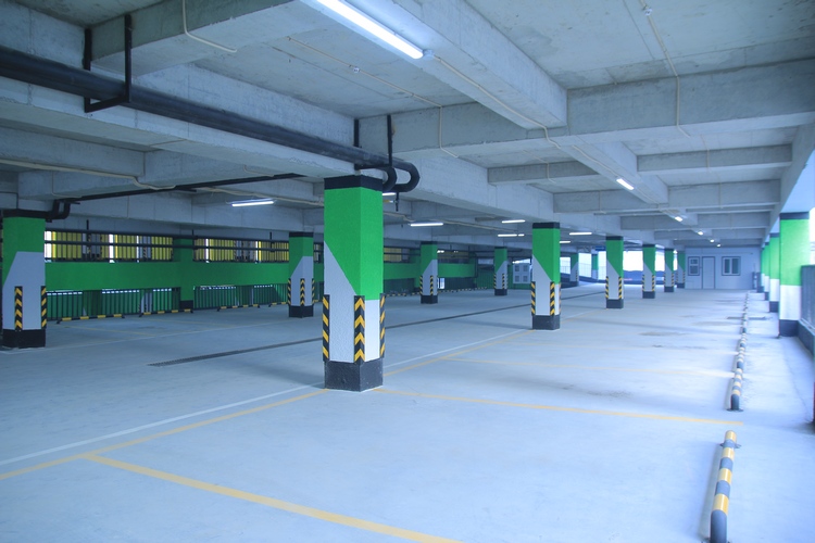 В паркинге пять этажей. Стены каждого выкрашены в свой цвет. Как признается архитектор Азимбек Ибраев, сделано это специально, чтобы посетителям было удобней ориентироваться и не тратить много времени на поиск своего автомобиля.