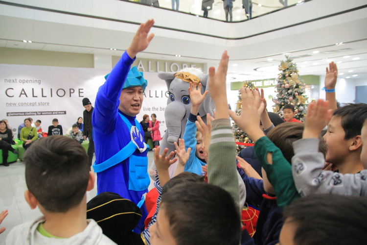 Администрация ТРЦ «Дордой Плаза» организовала насыщенную программу, которая включила в себя поход в кинотеатр на мультфильм, праздничный обед, посещение детского парка аттракционов «Мамалак», а кульминацией праздника стало традиционное новогоднее представление с Дедом Морозом, Снегурочкой и сладкими подарками для всех детей.
