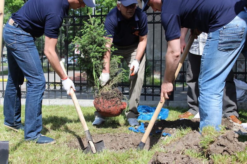 Также в память о тех, кто сражался на фронте и трудился в тылу, работники банка во всех областях страны приняли участие в республиканском субботнике. Сотрудники во главе с председателем совета директоров Уланом Сарбановым и председателем правления Евгением Немеринским посадили молодые деревья и цветы, освежили побелку и навели порядок на прилегающей территории.