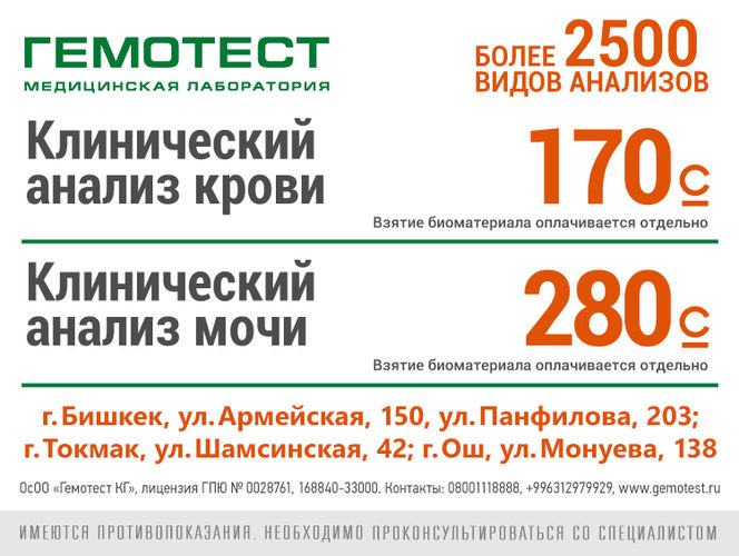 Больше информации вы можете получить на нашем сайте www.gemotest.ru, по телефону 0800 111 88 88, на страничках в Facebook @gemotestlabkg и в Instagram @gemotestkg.