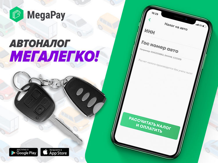 Мобильный кошелек MegaPay предлагает моментальный расчет и оплату налога на авто с помощью вашего телефона.