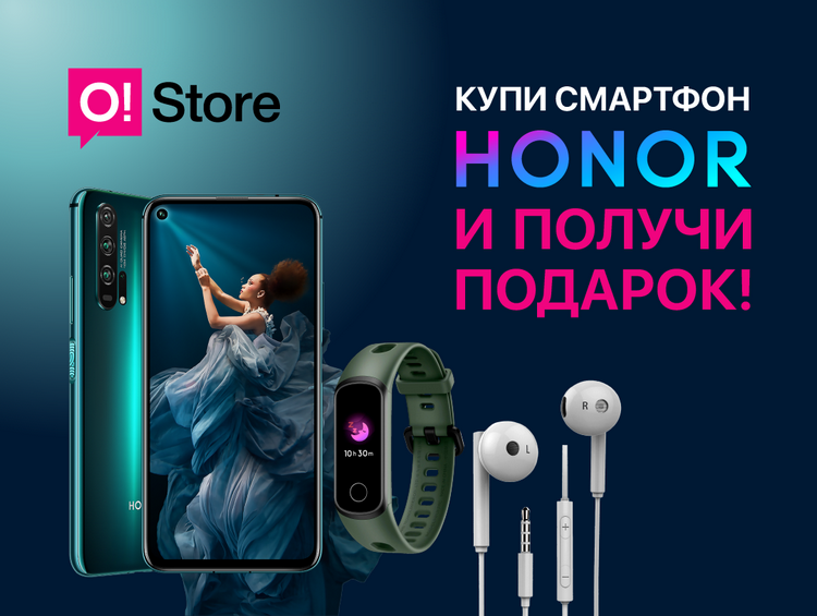 Если вы задумались о покупке нового устройства, обязательно загляните в O!Store. Прямо сейчас при покупке любого смартфона Honor вас ждет гарантированный подарок!