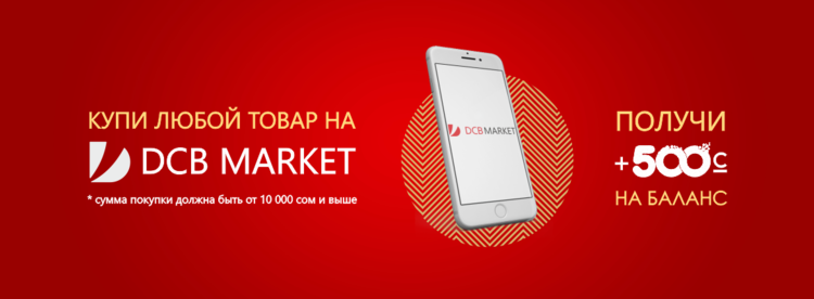 Ведь на www.dcb.kg/market все еще действует акция: купите любой товар на маркетплейсе от 10 тысяч сомов и выше и получите в подарок 500 сомов на баланс вашего телефона! Акция действует для всех операторов сотовой связи. Зачисление на баланс телефона проводится в будние дни.