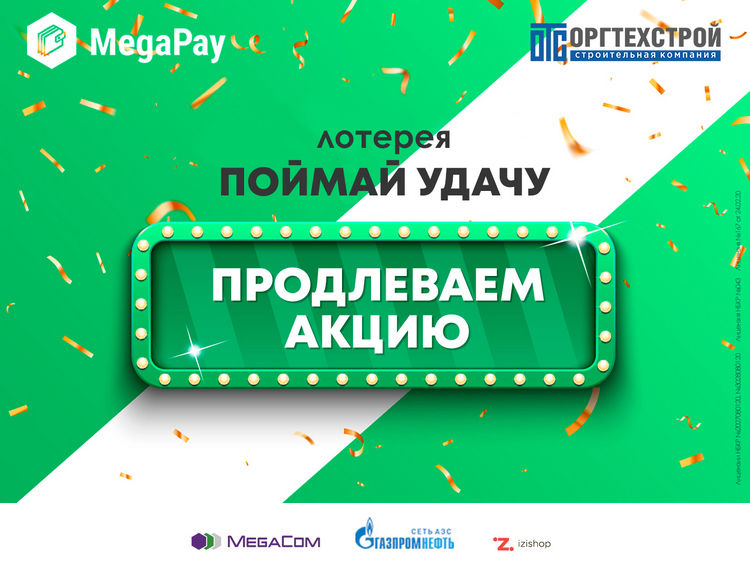 Компания MegaCom продлевает стимулирующую лотерею «Поймай удачу» до 30 июня 2021 года, увеличивая шансы абонентов выиграть больше крутых призов!