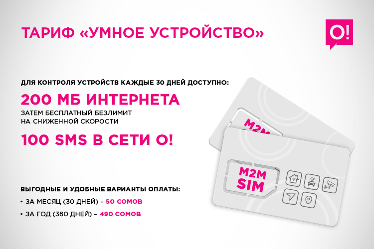 Мобильный оператор О! улучшил тариф «Умное устройство», который позволяет управлять удаленными объектами с помощью мобильной сети и значительно упрощает рабочие процессы как в бизнесе, так и в повседневной жизни. Теперь в тарифе 100 SMS и интернет предоставляются бесплатно даже после окончания основного пакета!