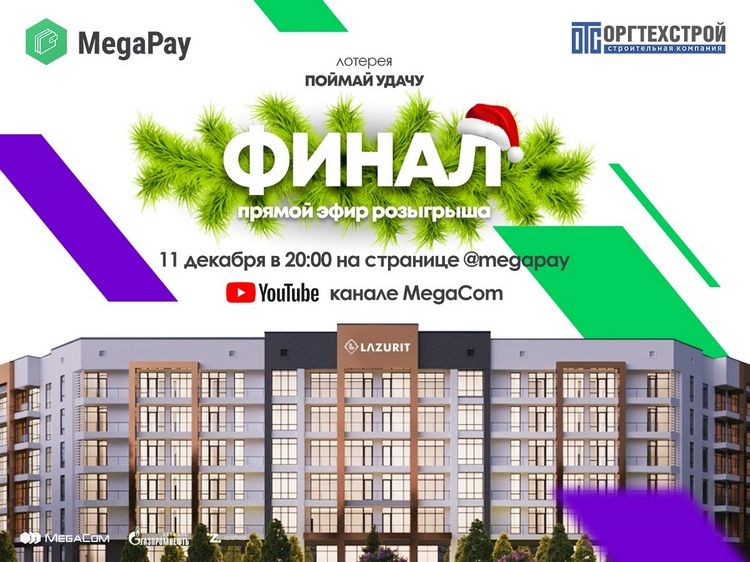 Друзья, свершилось! Сегодня в прямом эфире компания MegaCom разыграет главный приз лотереи «Поймай удачу!» — квартиру от строительной компании «Оргтехстрой» на побережье Иссык-Куля в строящемся ЖК «Лазурит»!