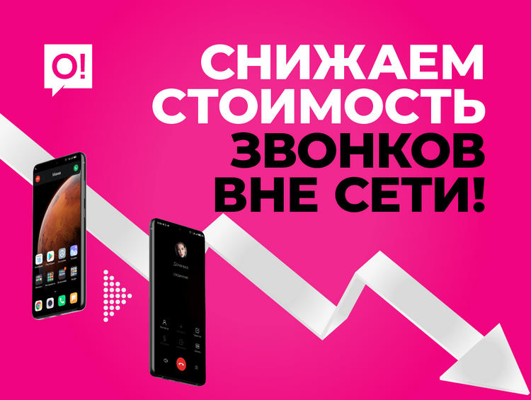 Мобильный оператор О! информирует о снижении стоимости голосовых звонков на сети других мобильных операторов КР до 2,8 сома без учета НсП с 8 января 2021 года.