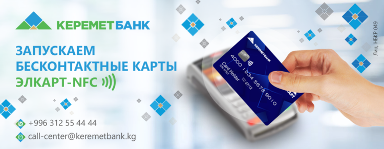 «Керемет Банк» начал эмитировать карты национальной системы «ЭЛКАРТ» со встроенной функцией бесконтактных платежей на базе технологии NFC.