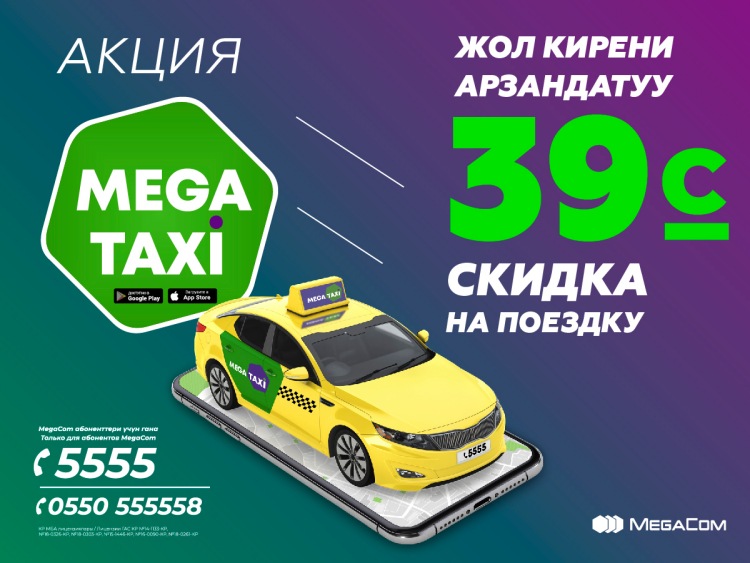 Получите промокод и используйте бонус в размере 39 сомов на поездку в комфортабельном MegaTaxi!