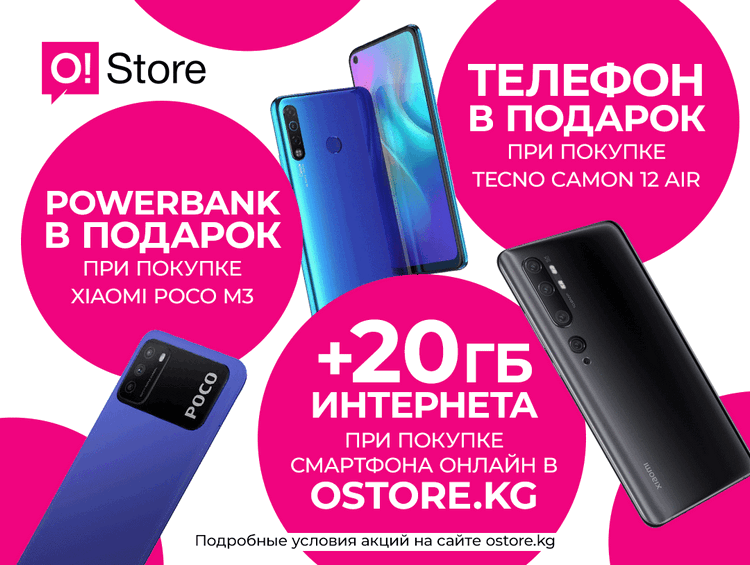 Внимание: действие акций ограничено. Акции проводятся во всех магазинах O!Store. Товар сертифицирован. Количество товара по акции и подарки ограничены. Спрашивайте более подробную информацию по номеру 0705007000 или на сайте ostore.kg. Адреса всех магазинов можно узнать по ссылке: https://ostore.kg/about/contacts/. Кредит предоставляет ОАО «Дос-Кредобанк», который может отказать в его предоставлении. Лицензия ОАО «Дос-Кредобанк» НБ КР № 037.
