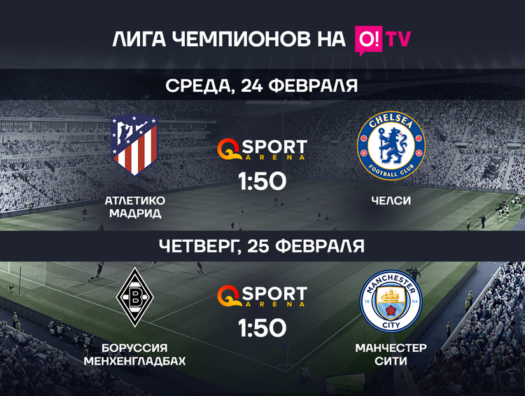 Скачивайте приложение O!TV, включайте телеканал Q Sport Arena и смотрите прямые эфиры Лиги чемпионов!
