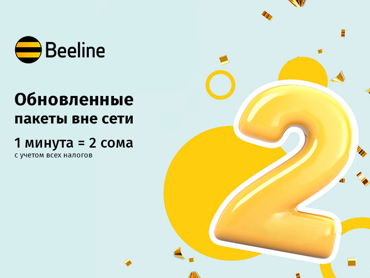 Beeline информирует о снижении стоимости голосовых звонков на другие сети: теперь стоимость минуты разговора составляет 2 сома.