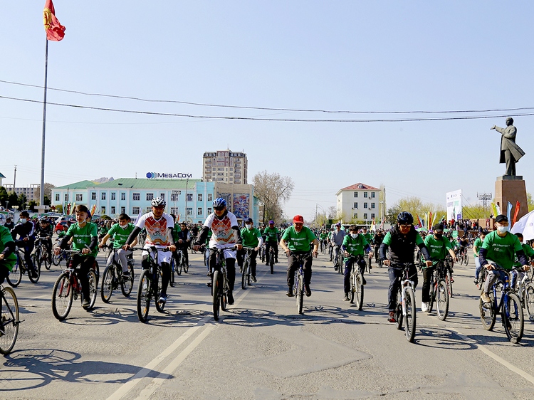 Участники велопробега разных возрастов – жители и гости Оша – с соблюдением необходимых санитарных норм и ПДД дружной колонной проследовали по центральным улицам города.