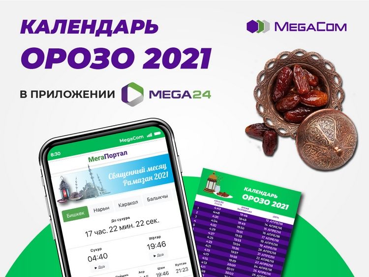 В этот благодатный месяц каждый абонент MegaCom может воспользоваться онлайн-календарем Орозо в приложении MEGA24 (доступно для скачивания в App Store и Google Play).