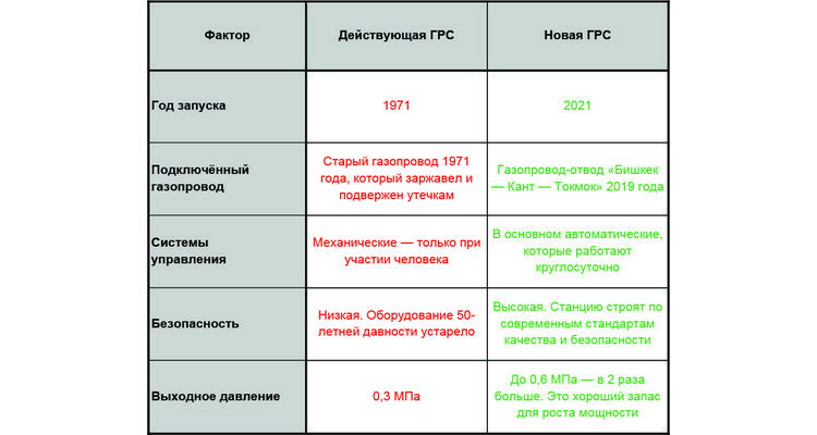 3. Рассчитана на большее число потребителей. ГРС строят с учетом роста бытовых и промышленных потребителей природного газа в Канте и Чуйской области. Если число потребителей вырастет, жители и предприятия Канта не испытают проблем с нехваткой давления газа.