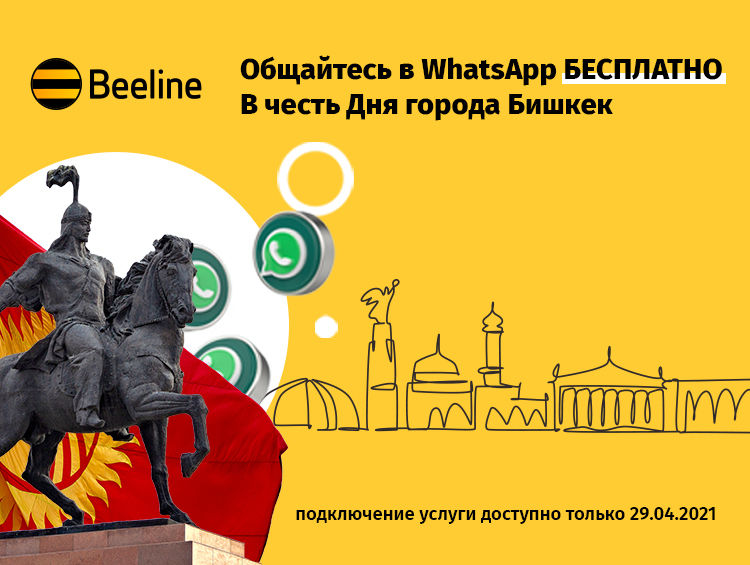 Сотовый оператор «Скай Мобайл» (ТМ Beeline) поздравляет жителей и гостей Бишкека с Днем города и дарит в этот день возможность безлимитного использования WhatsApp!