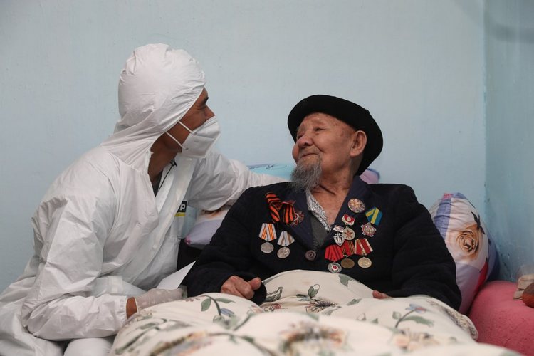 Продуктовые наборы и материальная помощь были переданы каждому участнику и инвалиду Великой Отечественной войны, блокадникам Ленинграда и несовершеннолетним узникам концлагерей, проживающим на территории Кыргызской Республики.