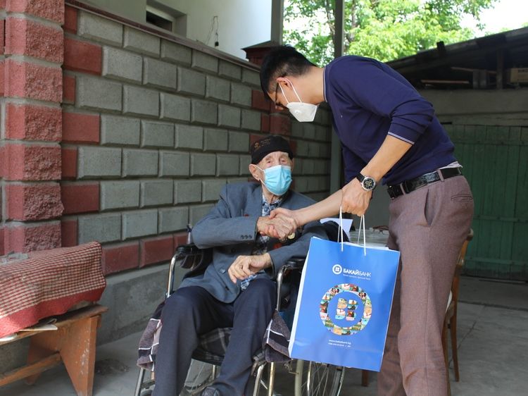 Сотрудники банка навестили и передали продуктовые наборы участникам войны, узникам концлагерей и лицам, награжденным медалью «За оборону Ленинграда», проживающим по всему Кыргызстану.