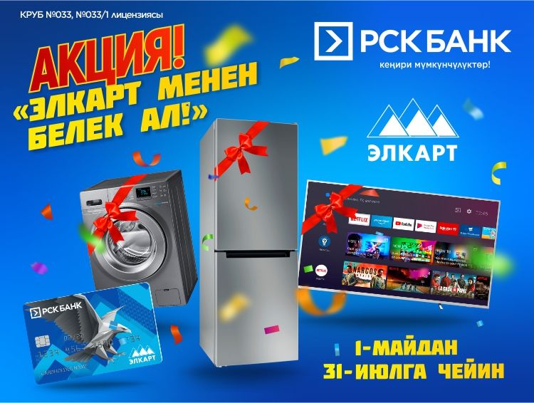 «РСК Банк» запустил одну из самых любимых клиентами акций «Элкарт менен белек ал». В этот раз банк дарит держателям «Элкарт» шанс стать обладателями бытовой техники.