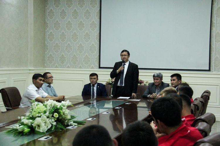 1 июня руководители Кыргызского футбольного союза в лице президента Канатбека Маматова и генерального секретаря Медербека Сыдыкова, а также министр культуры, информации и спорта Кайрат Иманалиев, директор Государственного агентства по делам молодежи, физической культуры и спорта Канат Шабданбаев и директор дирекции по олимпийским видам спорта Нурланбек Исмаилов проводили национальную сборную на отборочные игры ЧМ-2022 в Японию.