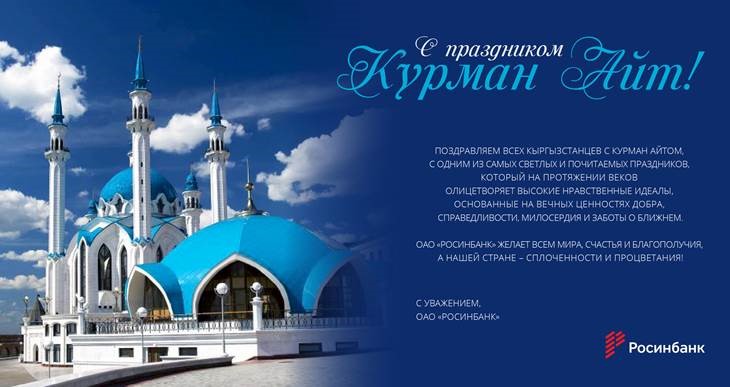 ОАО «Росинбанк» поздравляет кыргызстанцев с праздником Курман айт!