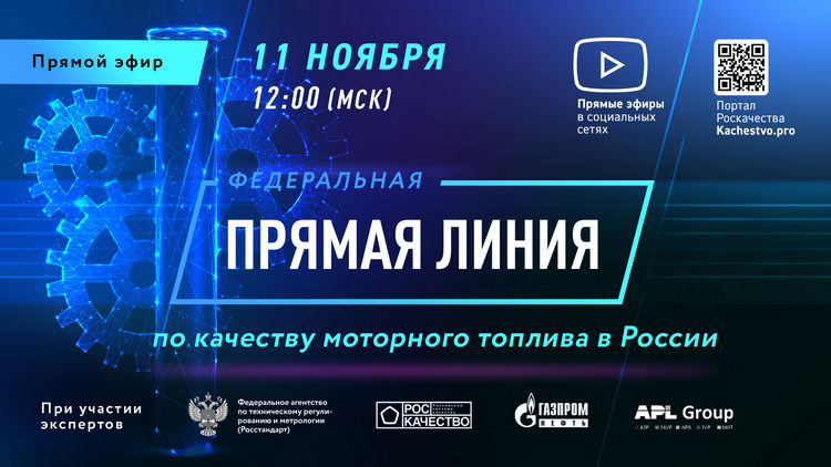 11 ноября, во Всемирный день качества, в России состоится третья ежегодная «Прямая линия» по качеству моторного топлива. В этом году она станет частью программы Международного онлайн-форума «Всемирный день качества в России», проводимого под эгидой Минпромторга, Росстандарта, Роскачества, Росаккредитации и ННЦК. В ходе интернет-трансляции на вопросы автомобилистов в прямом эфире ответят ведущие российские и европейские эксперты: