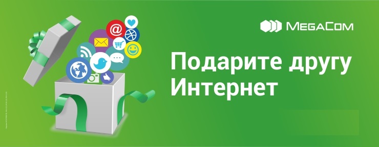 Подарите оригинальный и нужный подарок – мобильный Интернет от MegaCom, который позволяет общаться с друзьями в социальных сетях, играть в любимые игры, слушать любимую музыку, радио, смотреть видео, ТВ, читать новости, электронные книги и многое другое. Просто выберите любой из подарочных вариантов на сутки или на месяц: