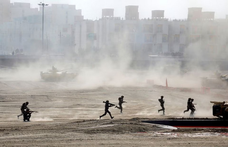 Фото Reuters. Солдаты индийской армии проводят тактические учения на Международной выставке вооружений DefExpo 2020 в городе Лакхнау.
