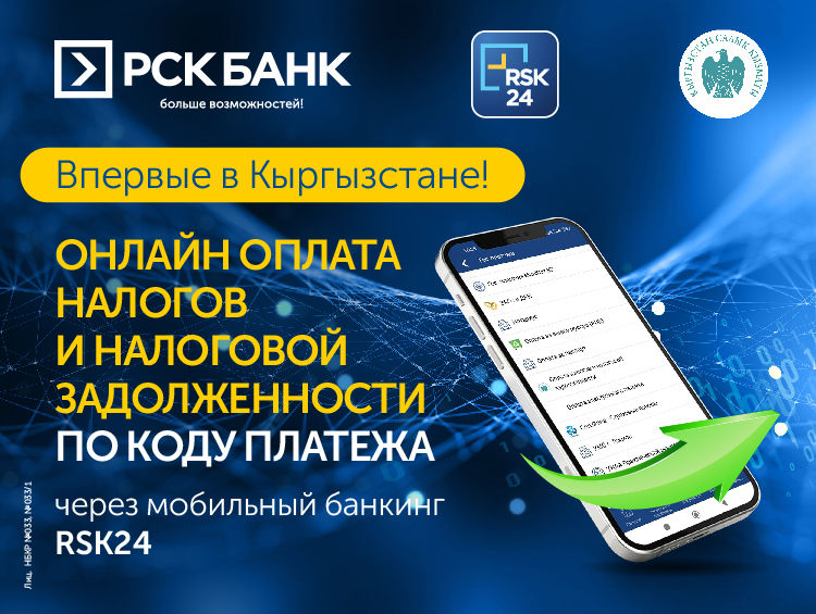 Впервые в Кыргызстане «РСК Банк» внедрил услугу онлайн-оплаты налогов и налоговой задолженности с идентификацией по коду платежа в мобильном банкинге RSK24.