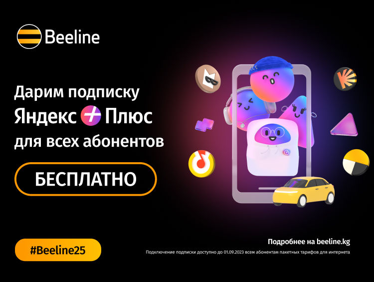 Получать подарки приятно, а дарить их еще интереснее! К своему 25-летию сотовый оператор Beeline Кыргызстан подготовил сюрприз для абонентов — бесплатную подписку на развлекательные сервисы «Яндекс Плюс». С такими возможностями праздничное настроение обеспечено!