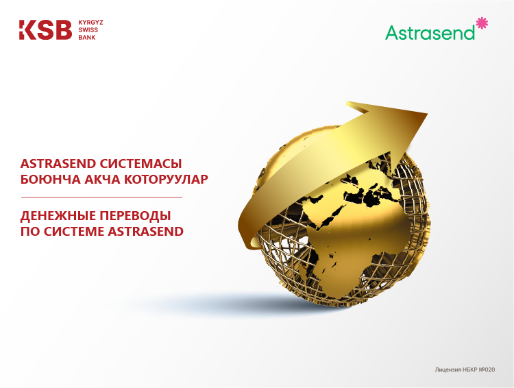 Получайте быстрые денежные переводы Astrasend в «Кыргызско-Швейцарском Банке»