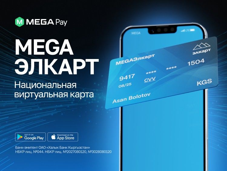Компания MEGA первой среди операторов сотовой связи Кыргызстана запускает виртуальную карту национальной платежной системы «Элкарт» в мобильном приложении MegaPay.